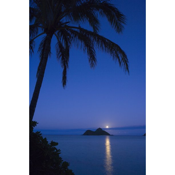 Usa Hawaii Oahu Palm Tree Over Pacific Ocean With Mokulua Island In Background Lanikai Poster Print 12 X 18 Walmart Com